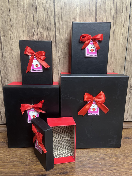 باکس کادویی مربعی طرح پاپیون مشکی قرمز
