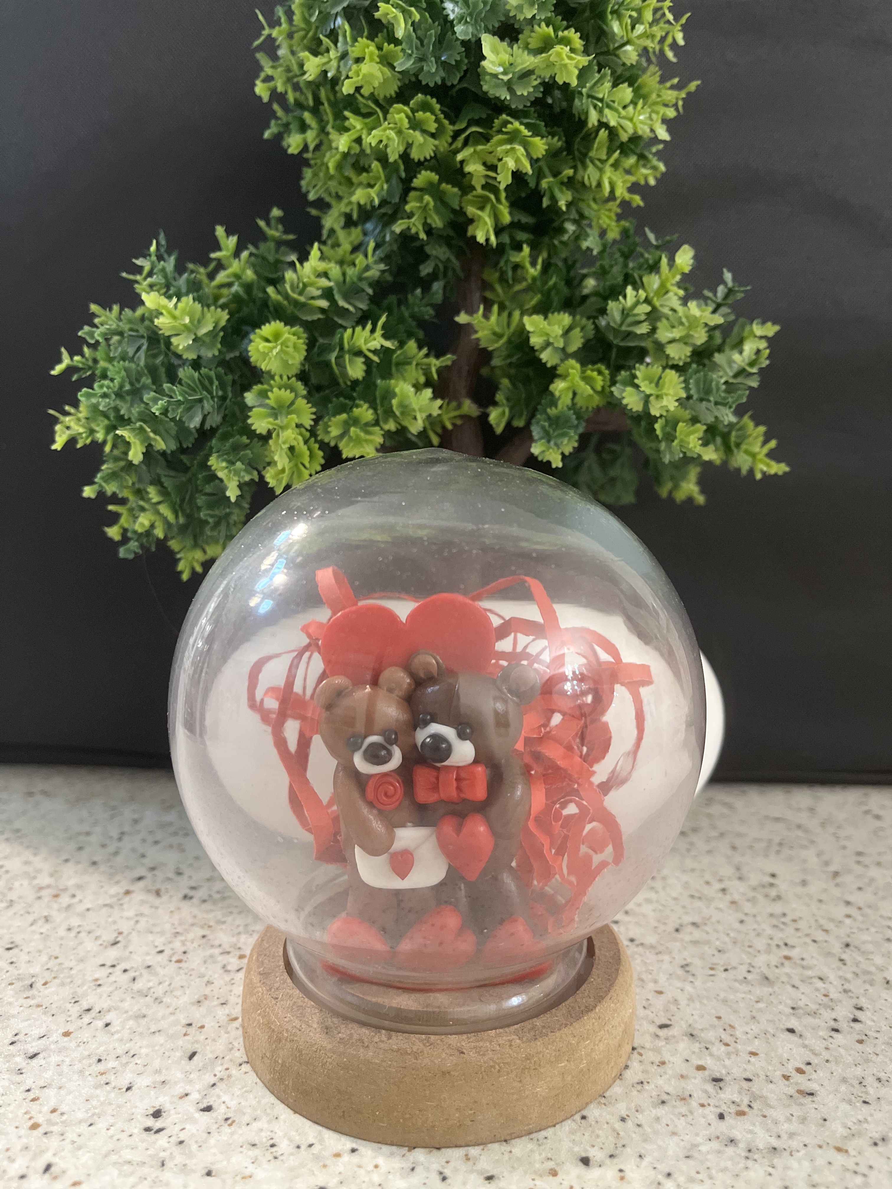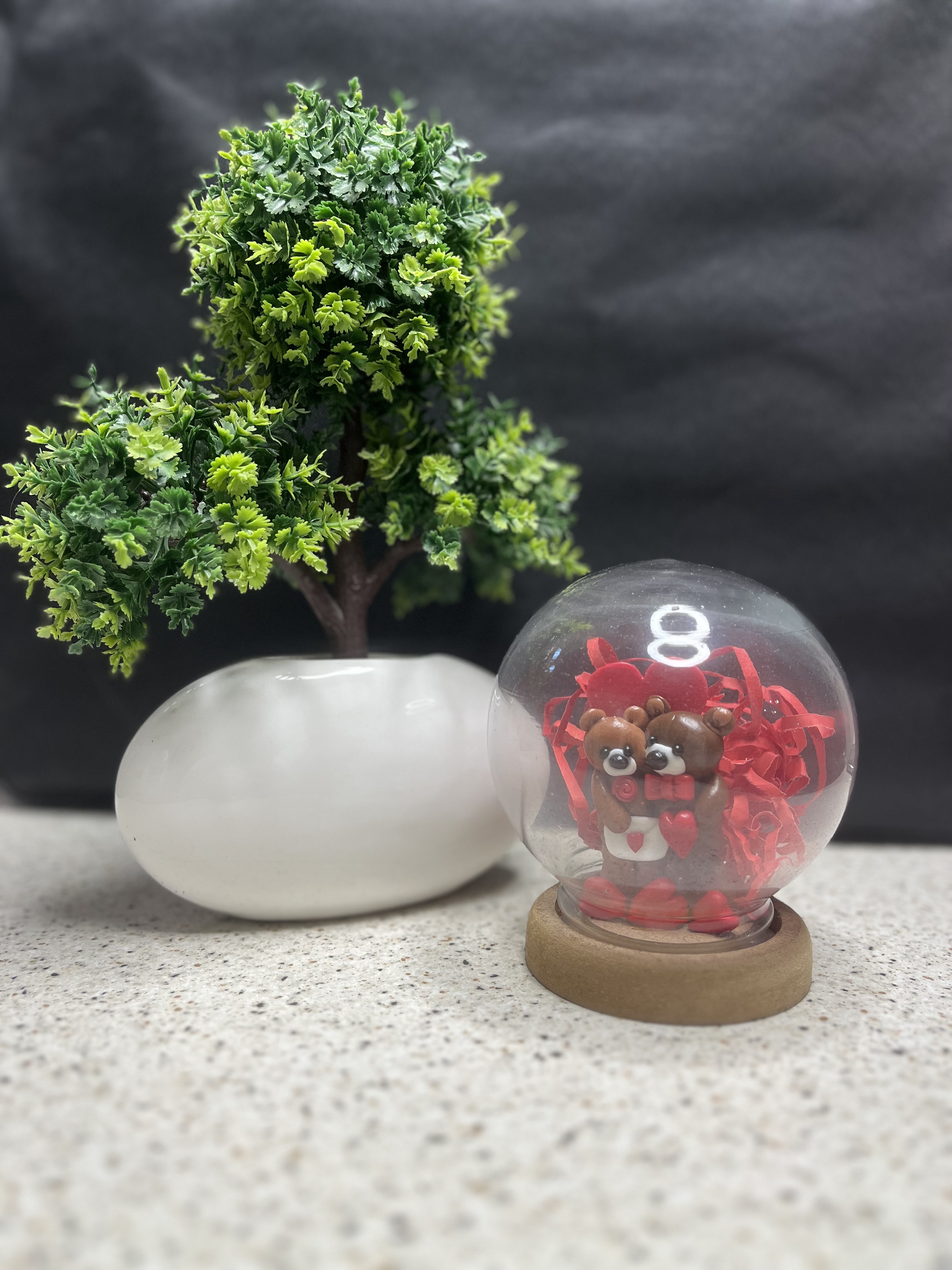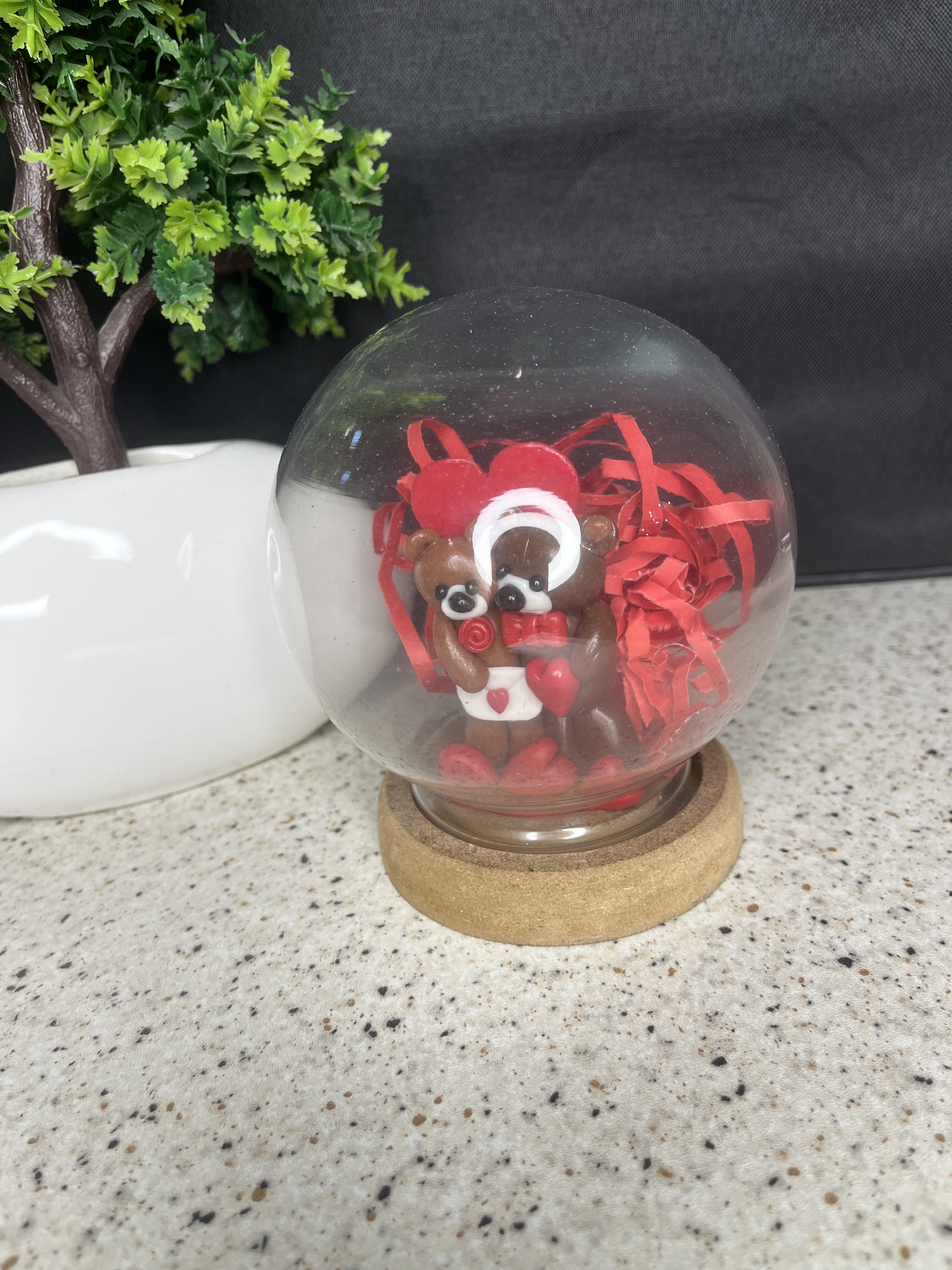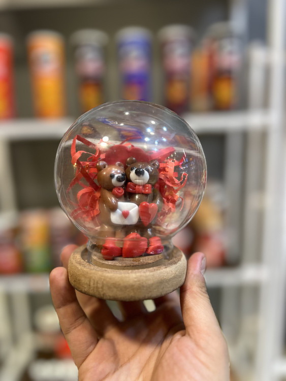 دو عدد خرس خمیری جذاب داخل یک حباب شیشه ای که دست ساز هست و همین ارزشش بالاتر میبره ...